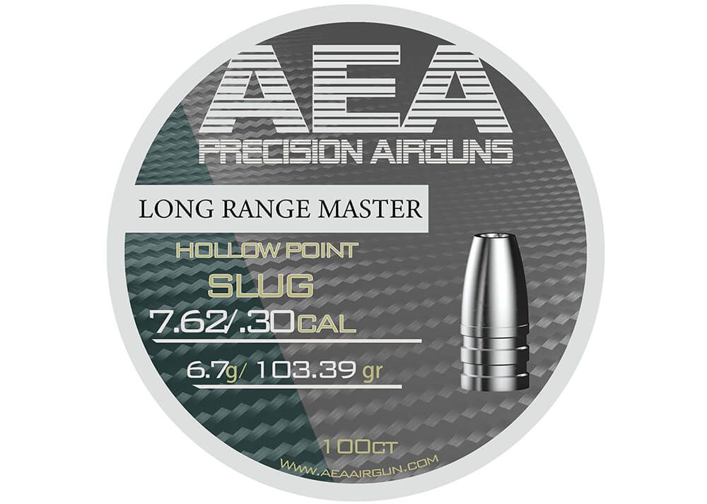 AEA Long Range Master Airgun Slugs Cal. 30 HP 103,39 grain 100 pc. A heavy 103,39 grain .30 hollow point slug designed for powerful PCP airguns. Optimized for long-range accuracy and strong terminal impact.