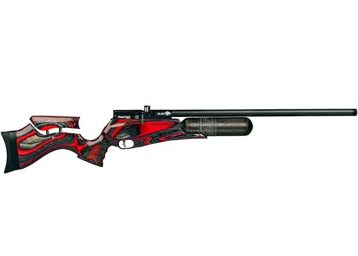 This Daystate Red Wolf HiLite HP Laminated features a carbon fibre full shroud round the 600 mm barrel and a lightweight 480 cc carbon fibre bottle.
