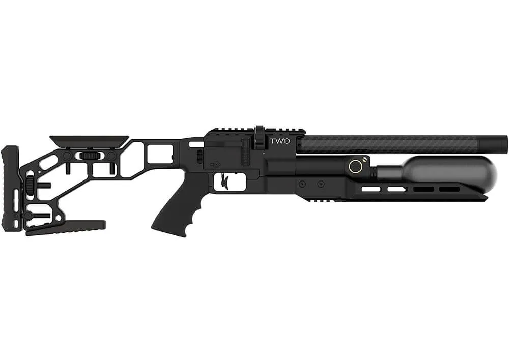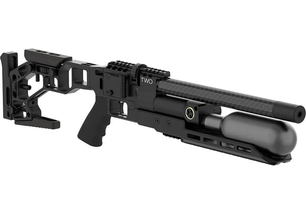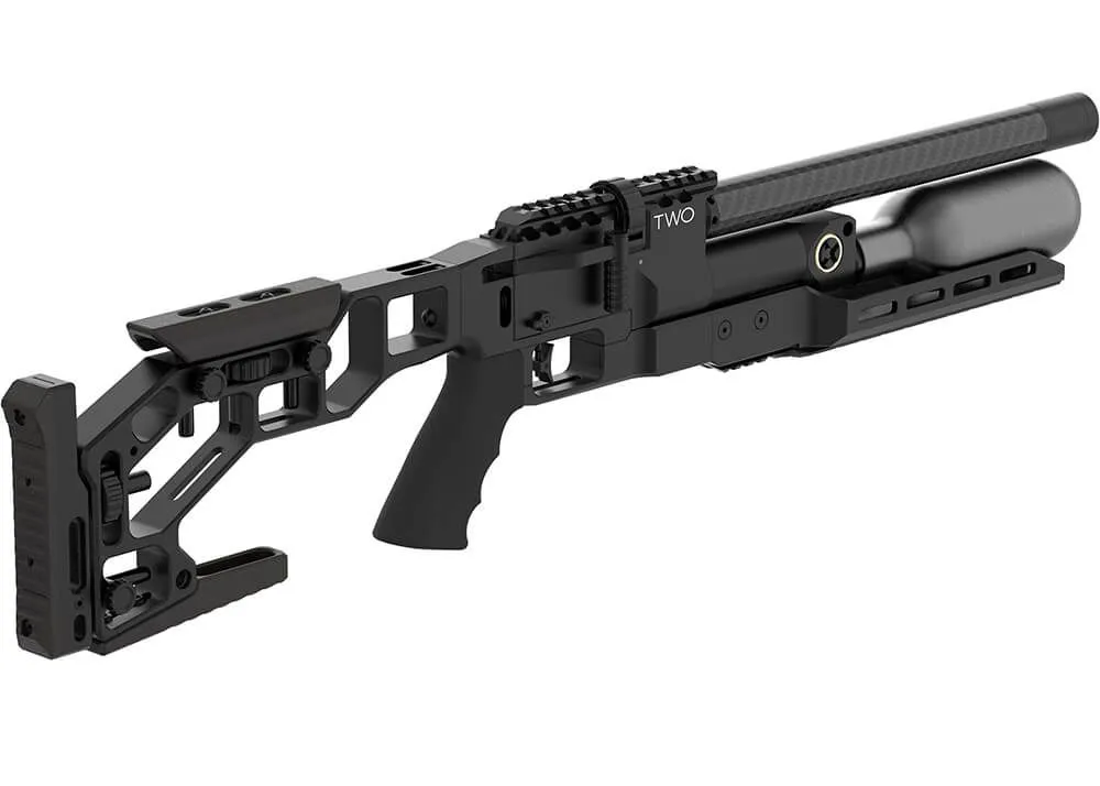 The Epic Airguns Two Tactical Compact CZUB CFB PCP rifle is perfect for long-range shooting, offering exceptional accuracy with its easily adjustable features. It boasts a 300 mm CZUB non-choked barrel, ensuring precision, and a Weaver/Picatinny scope rail with a 30 MOA incline to maintain sight on distant targets.