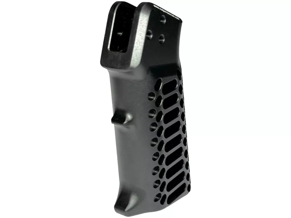 Eagle Vision AR Style grip for FX Impact, FX Maverick, Edgun etc. Made of a solid piece of 6061 Aluminum, sand blasted and black anodizid. The black anodizing finish makes the grip corrosion protected and wear resistant.