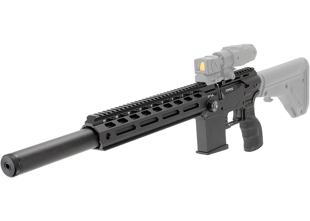 The FX DRS Tactical 700 is a high performance PCP air rifle with a an over barrel air reservoir, adjustable regulator, and customizable features. Its tactical design includes a full length Picatinny rail, adjustable trigger, and compatibility with AR15-style components.