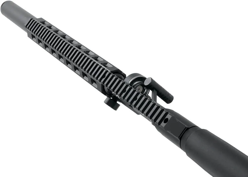 The barrel system features a removable Superior Heavy liner with rifling pressed from the outside. This design reduces friction and improves sealing around the projectile. The barrel includes a 1/2″ UNF thread with a thread protector, allowing the addition of an optional moderator.