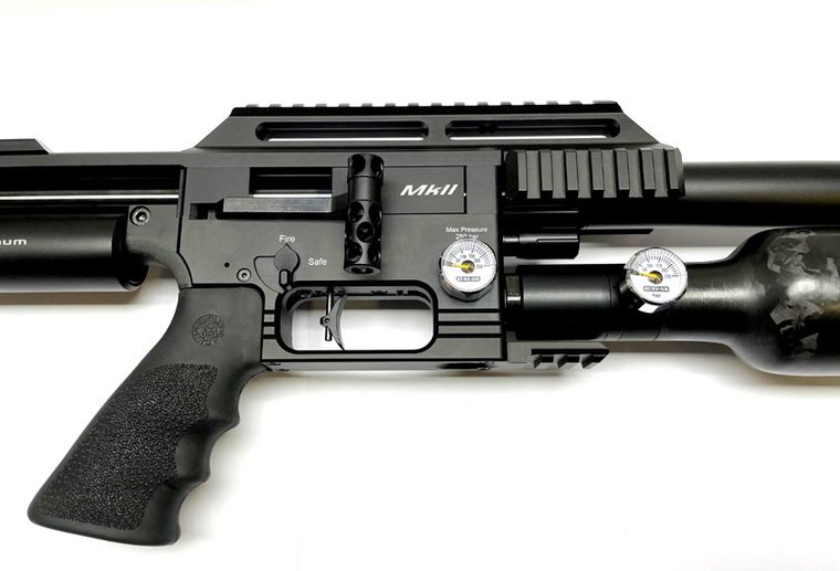 When the regulator is fitted to the rifle you can read the primary fill pressure on the regulator’s pressure gauge. The first stage regulator output pressure can be read on the factory gauge (previously used as fill pressure gauge) and the second regulator output pressure can be read on the original FX regulator pressure gauge.