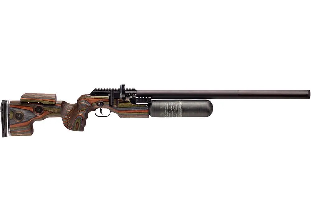 One of the standout features of the FX King 600 Green Mountain Camo is its GRS stock. The Norwegian firm GRS is well-known for their ergonomic and multi-adjustable laminated stocks. Being laminated, the stocks are less susceptible to slight warping, as normal wooden stocks can be under influence of temperature and humidity. This makes for a higher accuracy. Both the cheekpiece and the butt stock can be adjusted in fine steps without the need for tools. Two easy to operate push buttons are integrated in the stock design. And have you seen the grip? With finger grooves and slight angle, this must be the most ergonomic FX-stock to date.
