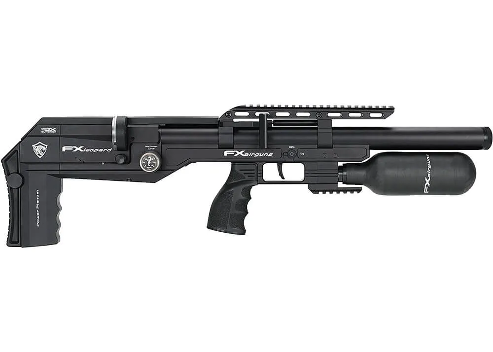 The Leopard is available in both bottle and tube variants to cater to different shooting preferences. The Compact Bottle variant is particularly suited for long-range and benchrest shooting, offering an additional 300 cc carbon fiber bottle that increases shot capacity. This results in a total of 510 cc of pressurized air, reducing the need for frequent refills. Additionally, a Weaver/Picatinny accessory rail is included for easy attachment of shooting accessories.