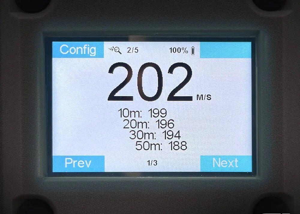 The FX Outdoors True Ballistic CE chronograph features measurements of 7.4×9.6” (19×25 cm) and weighs just 1.8 lbs (820 grams). Charging it can be done through the USB-C port. Its Bluetooth function enables it to connect to the FX Radar app. Buttons on the sides of the screen allow you to easily navigate through the menu and adjust settings and parameters such as units, which can be adjusted between fps, m/s, Joules and ft/lbs. The radar frequency can also be adjusted to enable the use of multiple chronographs at once.