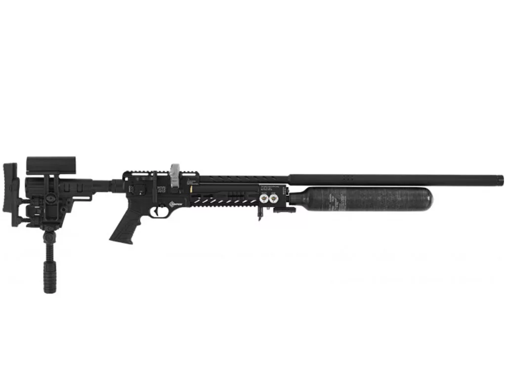The Hatsan Factor Sniper L Air rifle is a very versatile air rifle with a lot of build-in features. The rifle has an externally adjustable hammer preload, an externally adjustable regulator and additional air gauges to monitor the regulator pressure.