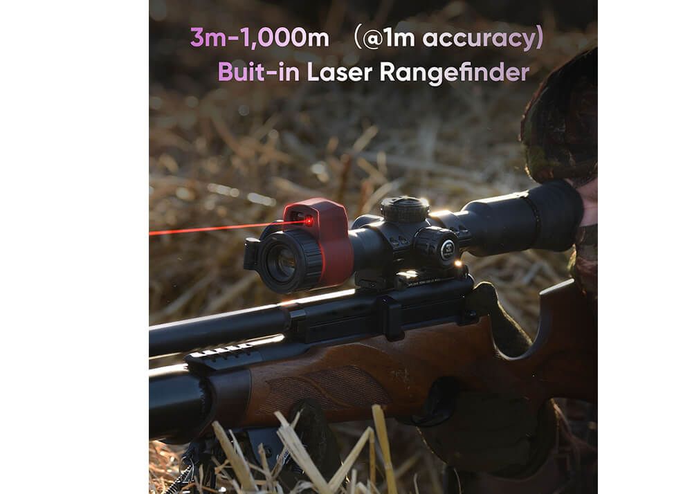The built-in laser rangefinder provides precise distance readings up to 1000 m, with single, continuous, and scan modes to support a variety of shooting situations. This feature significantly improves shot placement at longer ranges, particularly in low-light scenarios where depth perception is limited.