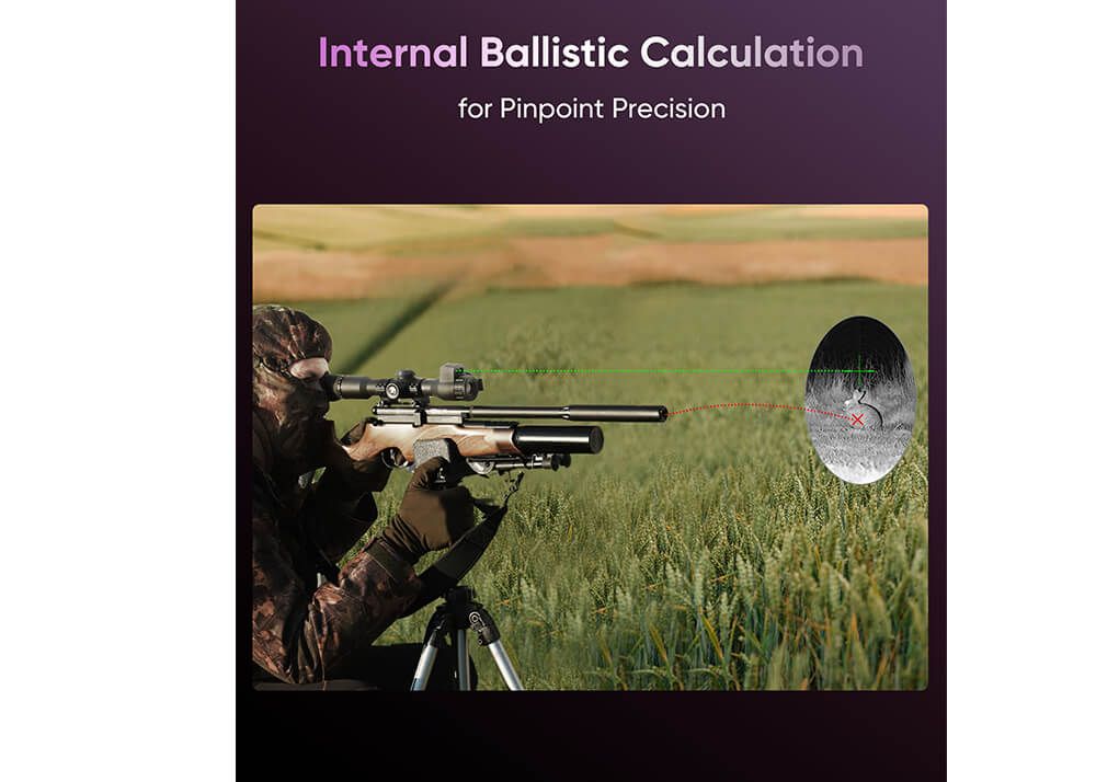 • Ballistic calculator for real-time trajectory adjustment based on your ammunition type