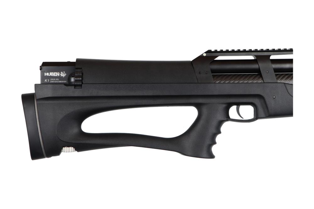 The Huben K1 features a very ergonomic black stock made of hardy synthetic material able to withstand most extreme situations and environments (extreme temperatures, water, scratches, etc…)