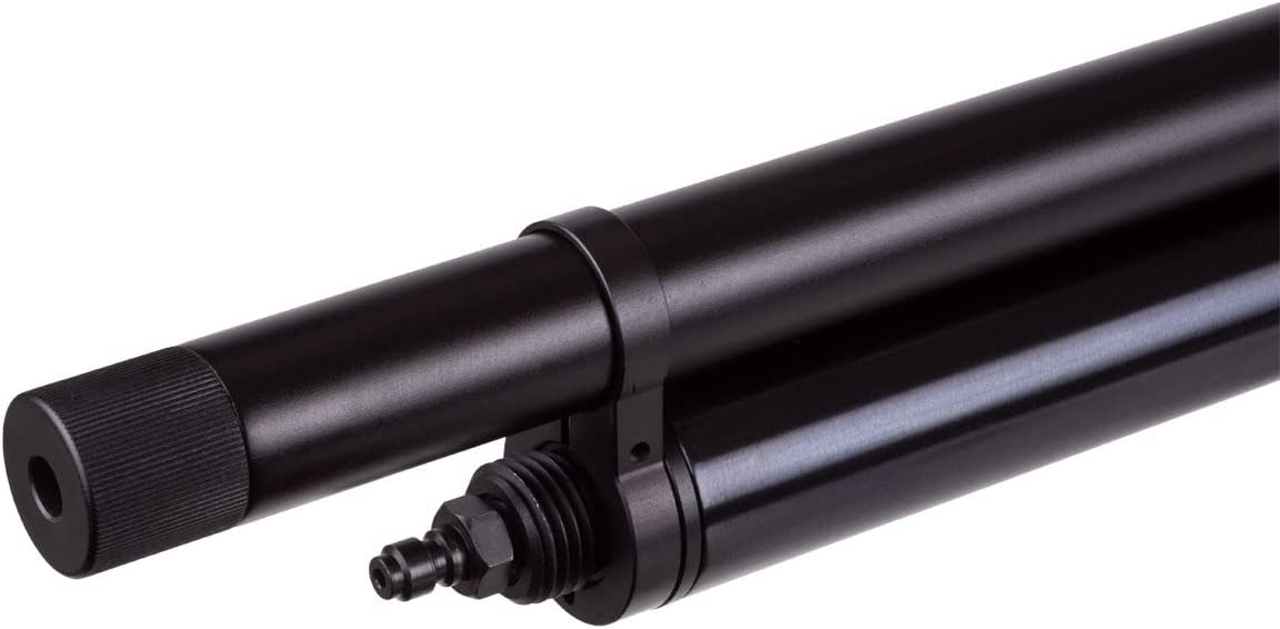 A barrel band between the barrel and pressurised air reservoir ensures a stiff construction to provide more accuracy. The cover on the end of the pressurised air reservoir covers the Foster connection. This connection enables the air rifle to be filled with pressurised air quickly. After it’s been filled up entirely, approximately 30 shots can be fired (which depends on the shot power).