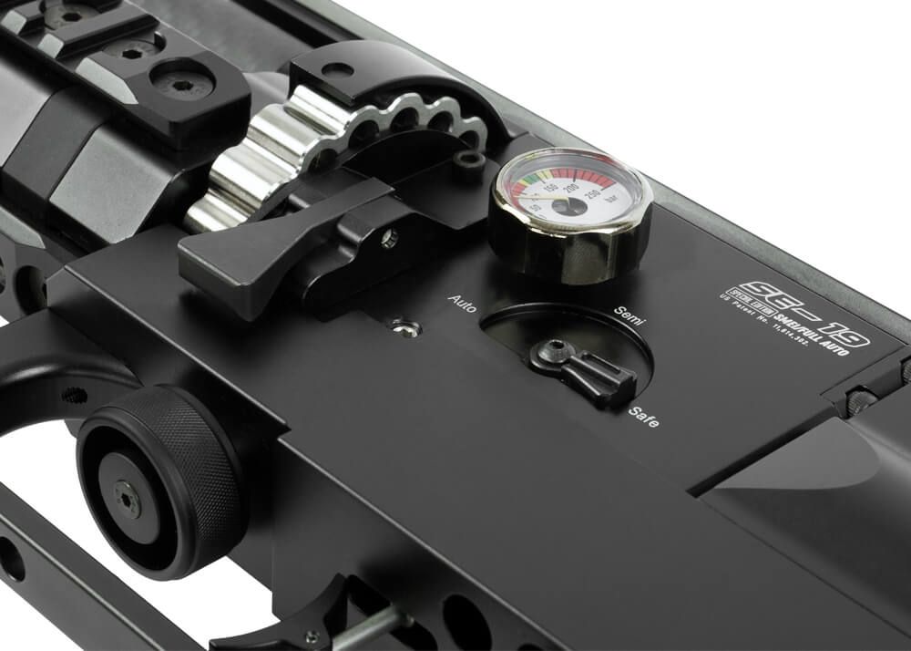 • Regulated Performance: The rifle features an adjustable regulator with dual pressure gauges, offering precise control over both the air reservoir and regulator pressures for consistent shot output.