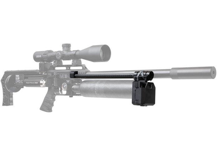 This chronometer mount by FX for the Pocket Chrono can be mounted on the side accessory rails of your Impact or Maverick, after which the Pocket Chrono can be attached to it, instead of to the barrel. This prevents unwanted alterations to the point of impact of pellets, as tends to happen when the extra weight of the Pocket Chrono is attached to the barrel.