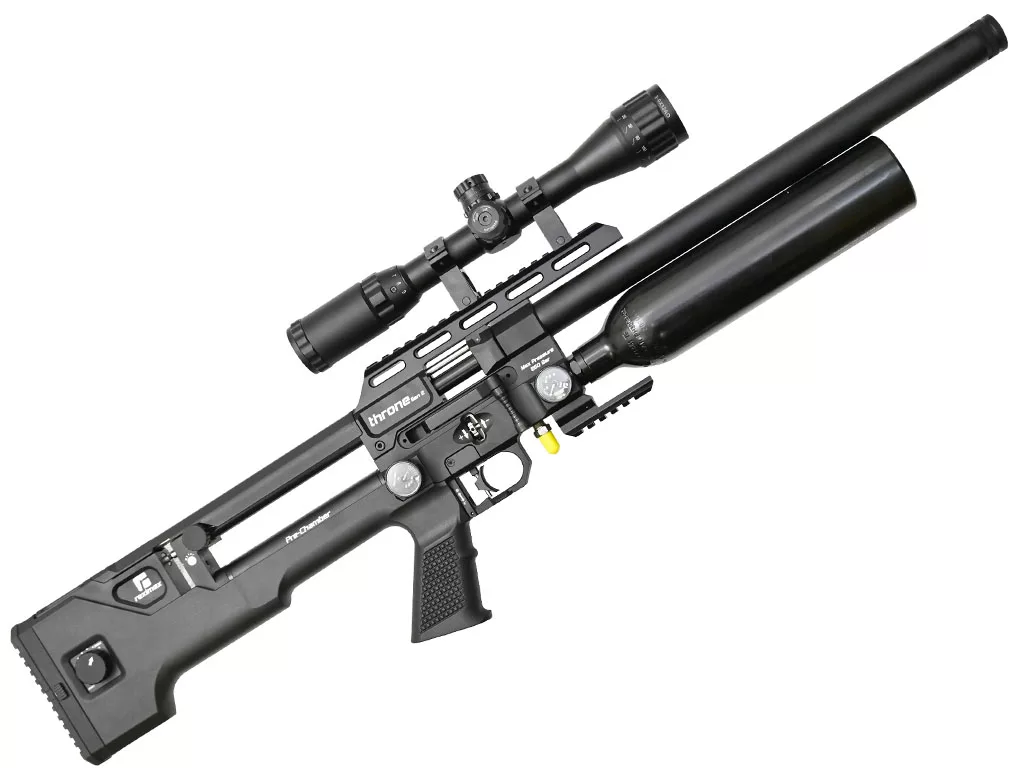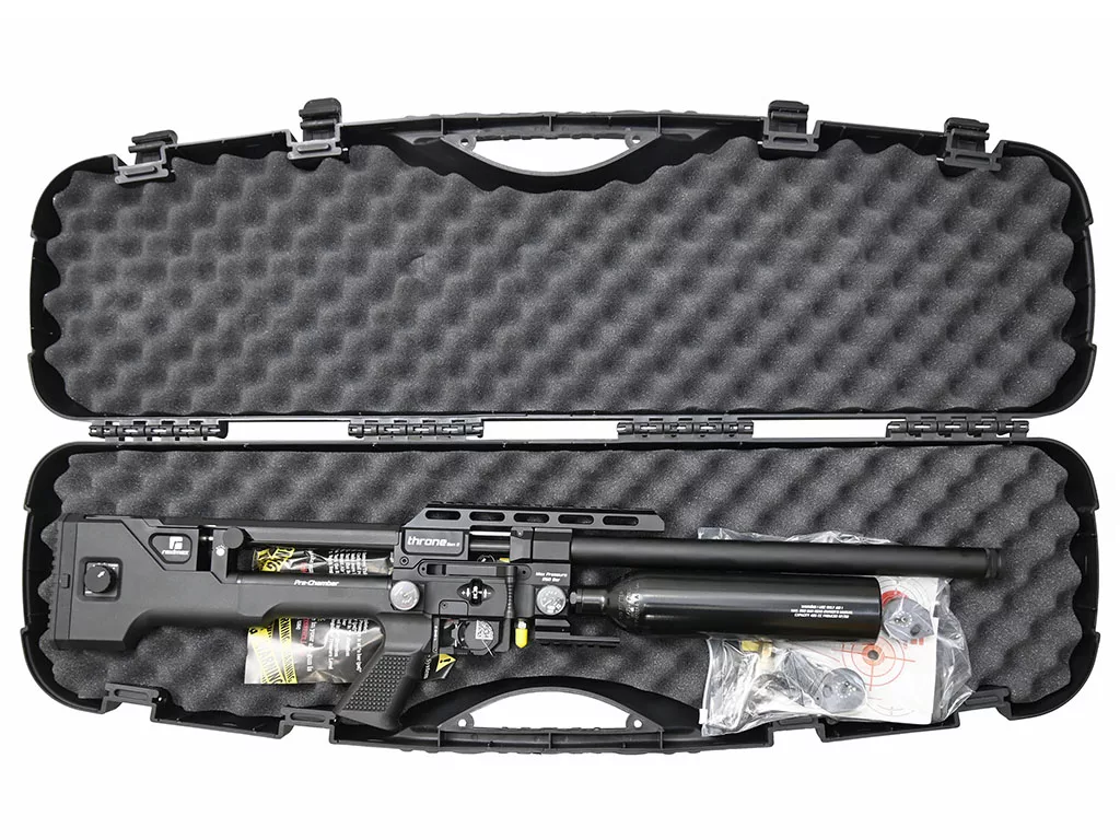 The Throne Gen 2 is equipped with a Weaver/Picatinny mounting base both below and above the barrel, providing ample space for accessories such as optics and bipods. The package includes two magazines, a luxurious case for secure storage and transportation, a single-shot tray for precision shooting, and a fill probe for easy refilling of the air cylinder.