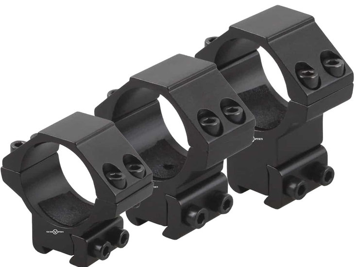 Vector Optics scope mounts set. Available in low, medium or high, dovetail base. For 30 mm. diameter rifle scopes.