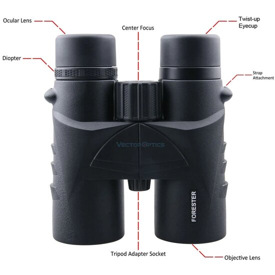 The Vector Optics Forester 10×42 Binocular (SCBO-04) is a lightweight, durable binoculars that you can take with you on a hunt, hike or shooting range.