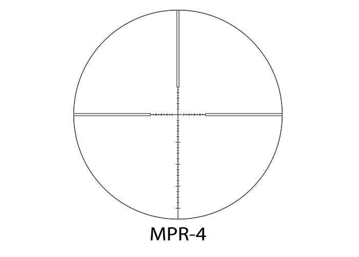 The etched MPR-4 reticle of the Vector Optics Veyron 6-24×44 MPR-4 rifle scope has an MRAD format and can be adjusted by means of the turrets.