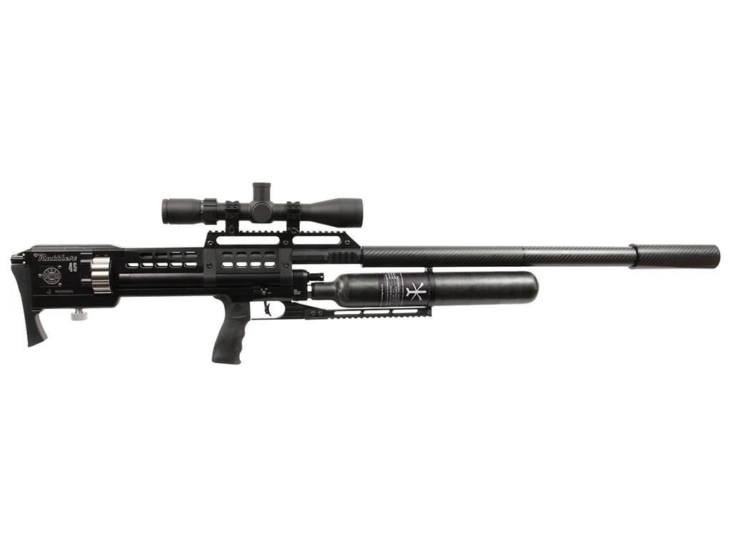 The Western Airguns Rattler .45 Long Strike is a semi-automatic big-bore air rifle delivering unmatched power, precision, and adaptability, perfect for long-range hunting and target shooting.